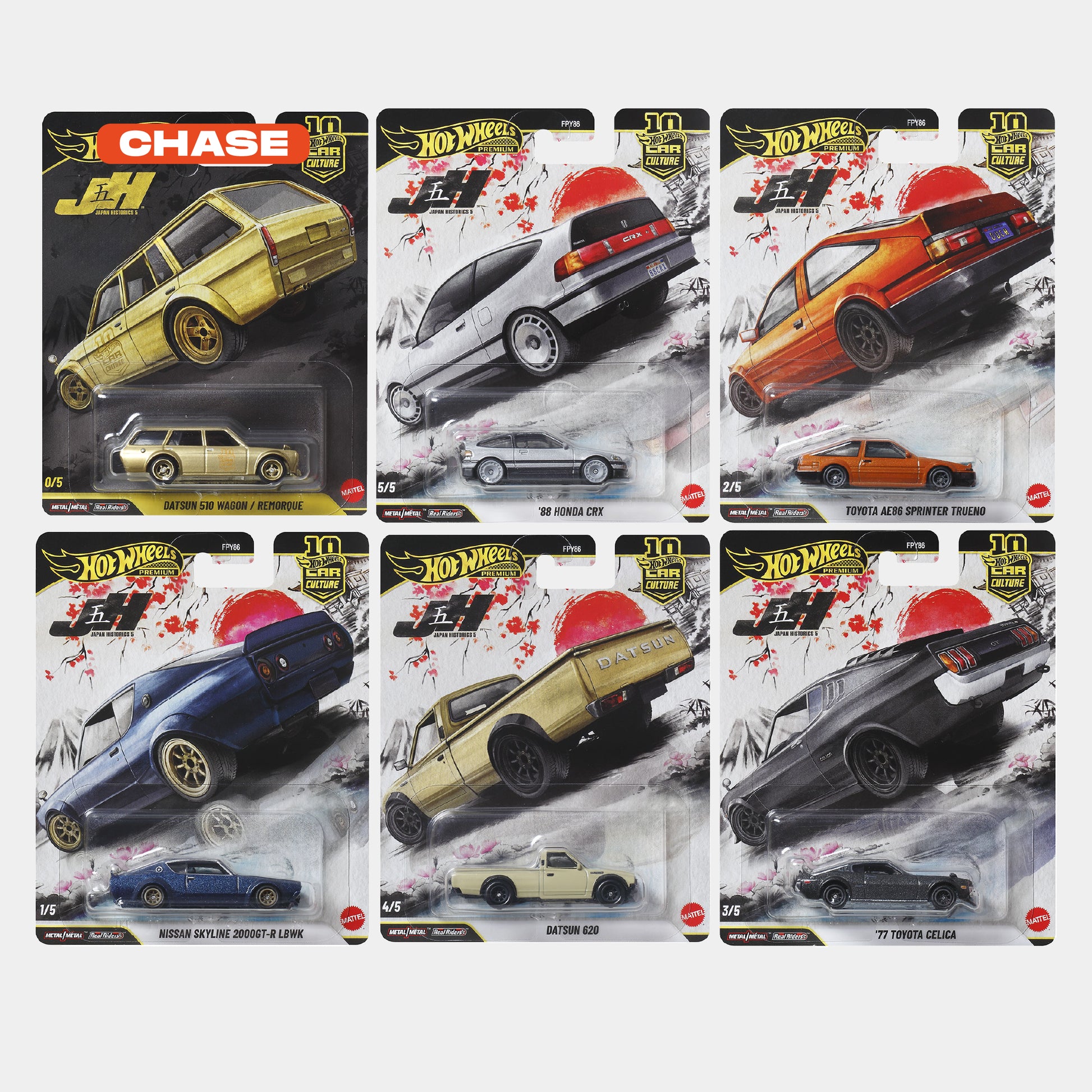 El chase es el Datsun 510 Wagon, que es introducido al azar por Mattel en las cajas selladas de 10 unidades